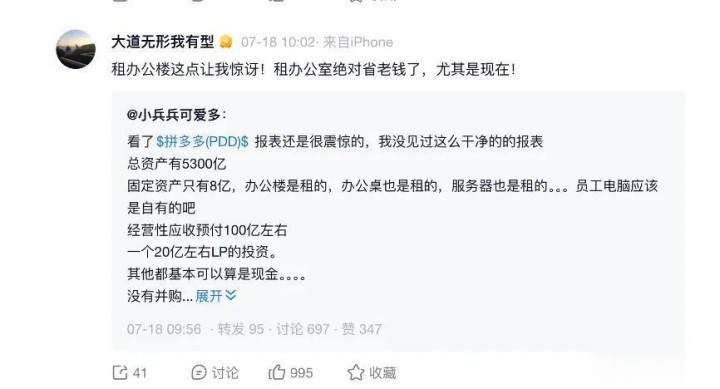 就在几日前,段永平还在雪球表示拼多多租办公楼表示惊讶,尤其是现在绝对省钱。